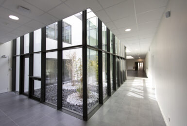 Situé à Lieusaint, en Seine-et-Marne, l’ensemble Carré des Arts appartient au campus universitaire ICAM Paris-Sénart et abrite les bureaux de l’Urssaf.