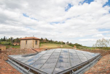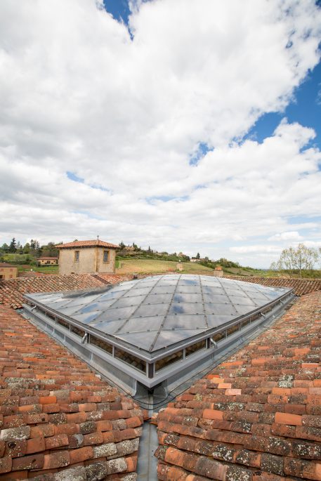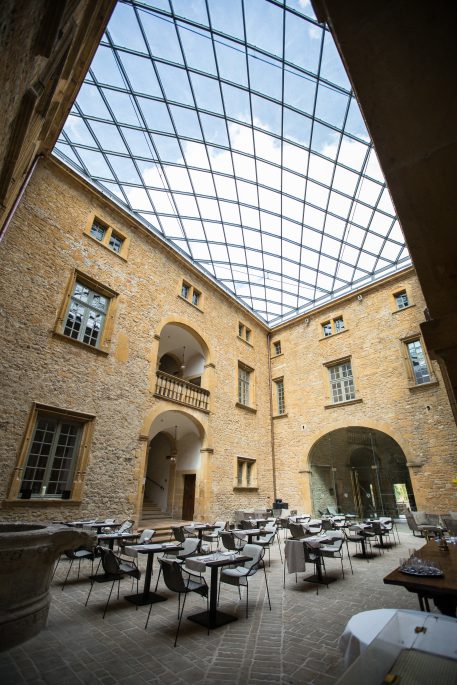 Rénovation du Château de Bagnols classé monument historique avec la construction d’une verrière qui surplombe la cour centrale, créant un nouvel espace de vie et transformant les bâtiments, jadis dédiés au vin, en suites contemporaines et en un spa somptueux apportant un nouvel élan prometteur au château-hôtel devenu cinq étoiles depuis 2013.