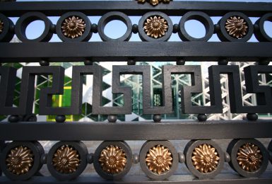 Restauration de la grille de la Manufacture d’armes. Inscrite à l’inventaire des monuments historiques depuis mars 2006 et remise en place en 2009 pour marquer l’entrée de la nouvelle Cité du Design, elle est le symbole de la « Manu » qui marqua l’histoire industrielle stéphanoise de 1864 à 2001. Grenaillage de l’ouverture, sablage des pièces en bronze et remontage à l’identique.