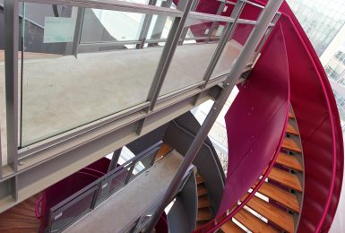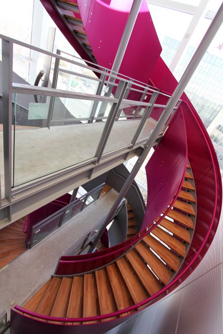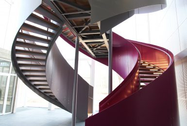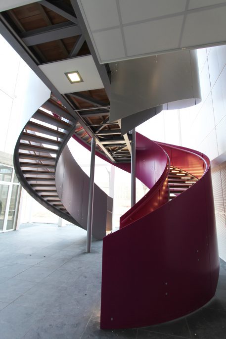 Réalisation d’un escalier à double volets pour l’Institut Génomique Fonctionnel de Lyon.