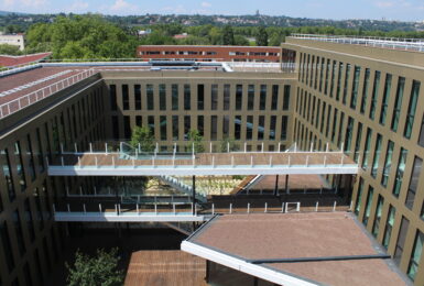 La structure de 15 000 m2, sur trois niveaux et un rez-de-chaussée, héberge aujourd’hui le siège régional de l’opérateur d’énergie Dalkia, un atelier et le campus CESI.