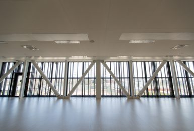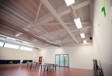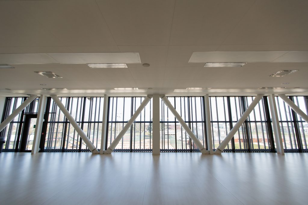 Réalisation du bâtiment nommé Octogone. Équipement multisport de 8 salles agrémenté de nombreux espaces de vie et de convivialité. Bâtiment moderne et original de par sa conception qui consiste en deux rectangles posés l’un sur l’autre perpendiculairement, créant un porte-à-faux de part et d’autre du niveau supérieur.
