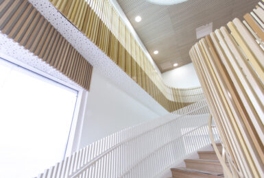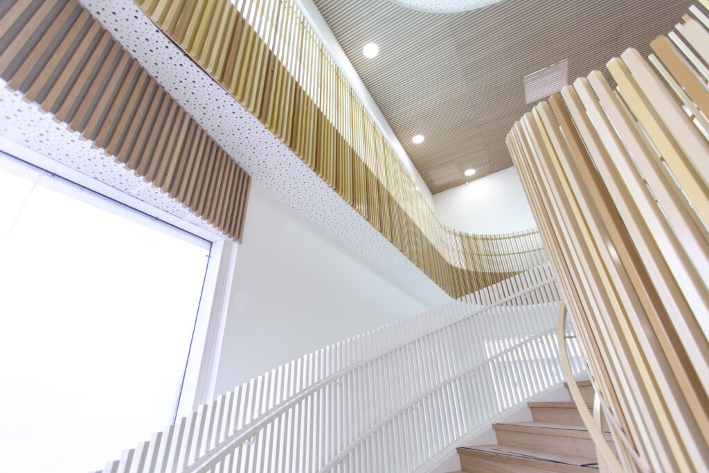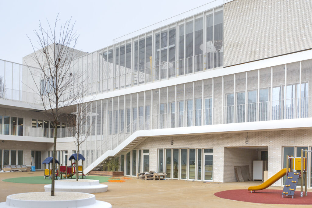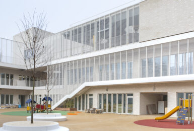 Quartier Gratte-Ciel à Villeurbanne, le nouveau bâtiment du groupe scolaire Rosa Parks révèle un geste architectural réussi, faisant la part belle aux ouvertures et à la fluidité de circulation.