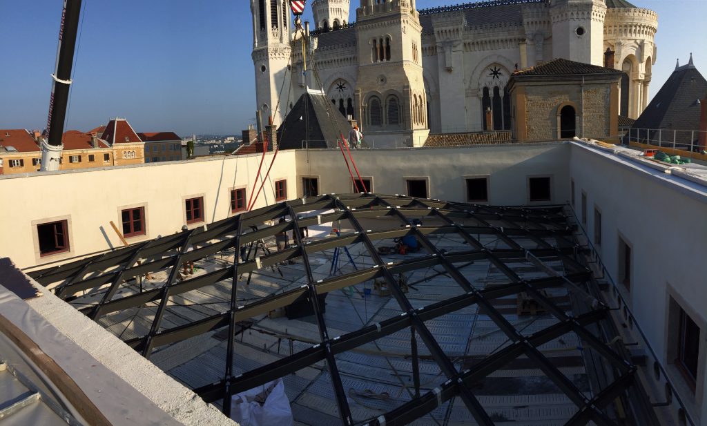 En images dans un reportage de France 3 ==> notre intervention lors de la pose d’une verrière de 260m² fabriquée dans nos ateliers, au sein de la Maison Carrée de la Basilique de Fourvière.